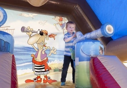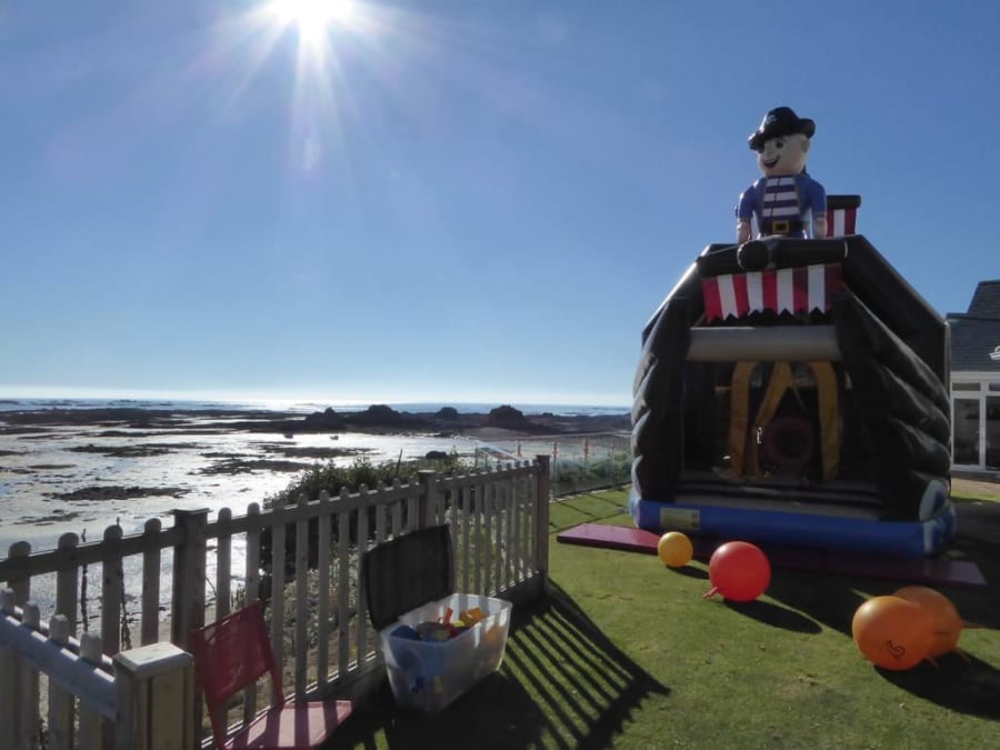 This inflatable Pirate Ship is huge, measuring 10m long, 5m wide and 5m high so whether it's outside in your (large) garden, or inside in a big community hall such as St. Mary's Community Centre, the Elim Rock Community Centre, Maufant Youth Club, St.Lawrence Community Hall this is inflatable that you want to entertain lots of kids.