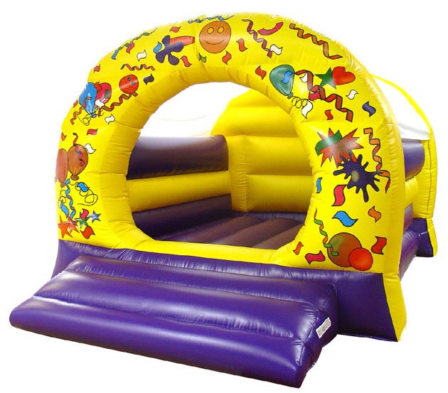 Classic carnival themed bouncy castle with a sloping step, making it easy for very little ones to get on and off. This castle will fit into most venues.