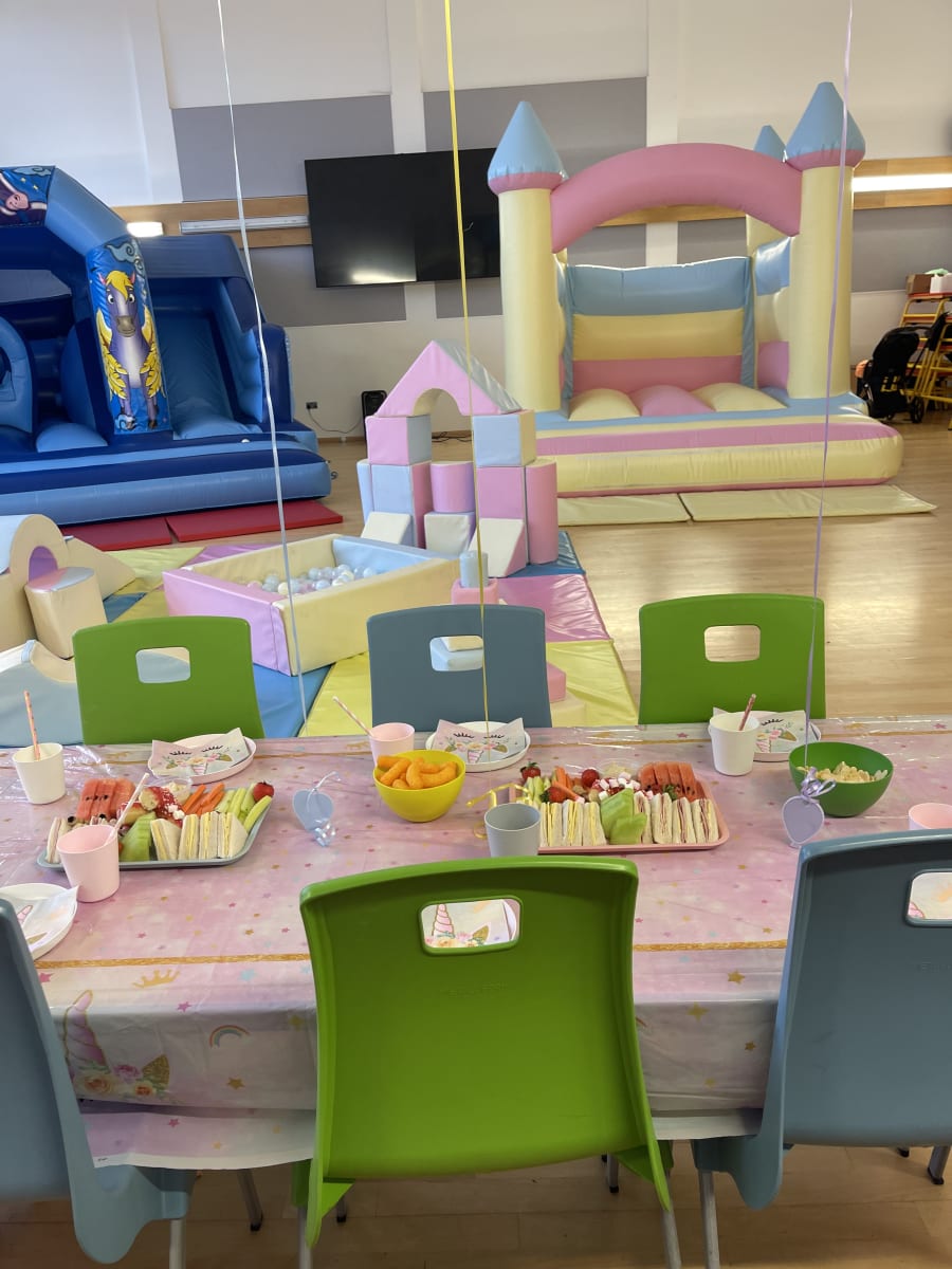 Why not combine our beautiful turret top castle with the matching pastel soft play? This combination will be the highlight of your party! Perfect to bespoke to many themes such as rainbows, unicorns, care bears, Disney, Bluey and many more!