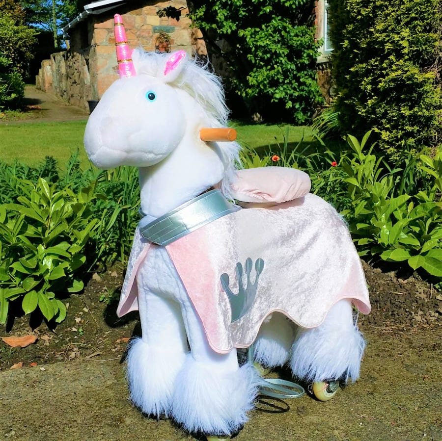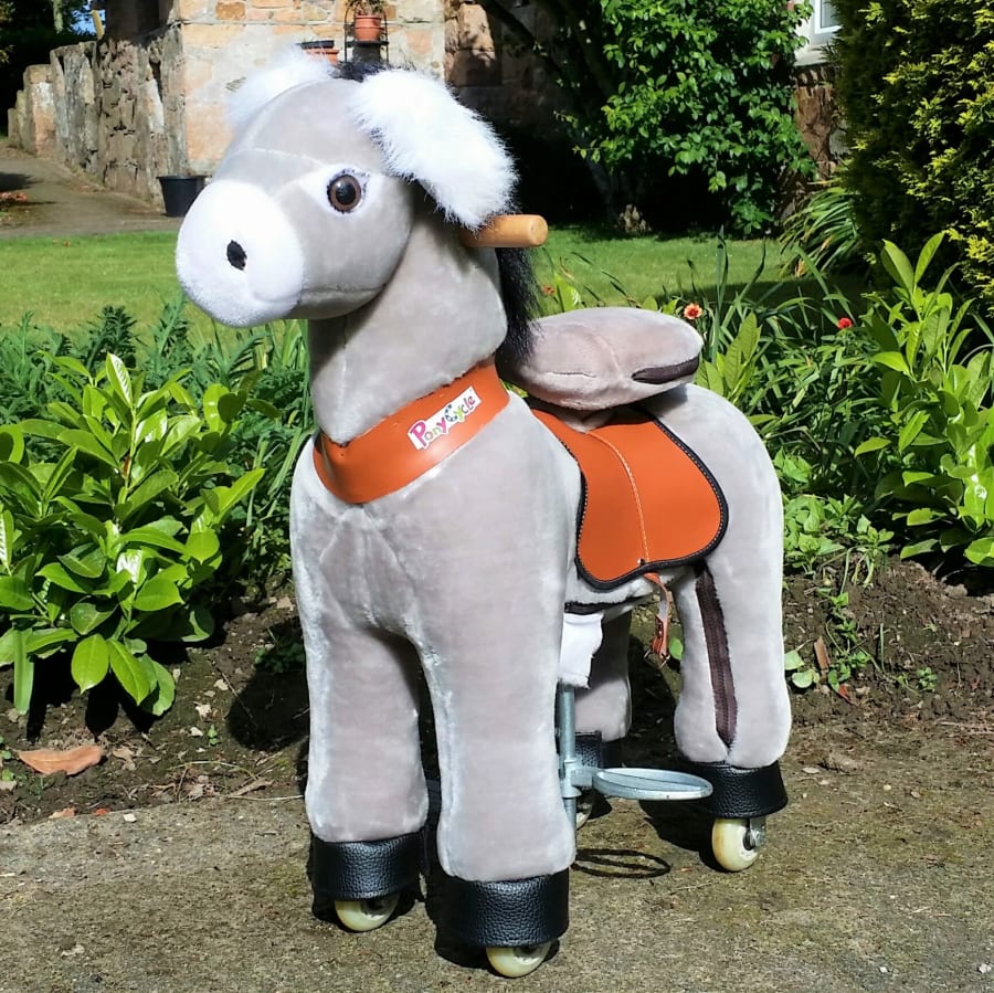 Our medium sized Pony Cycles are suitable for ages 5 to 9, maximum weight 6 st 4 lbs / 88 lbs / 40 kg. We have 3 cute ponies in shades of brown, with optional knight's blankets, 2 donkeys and a unicorn.