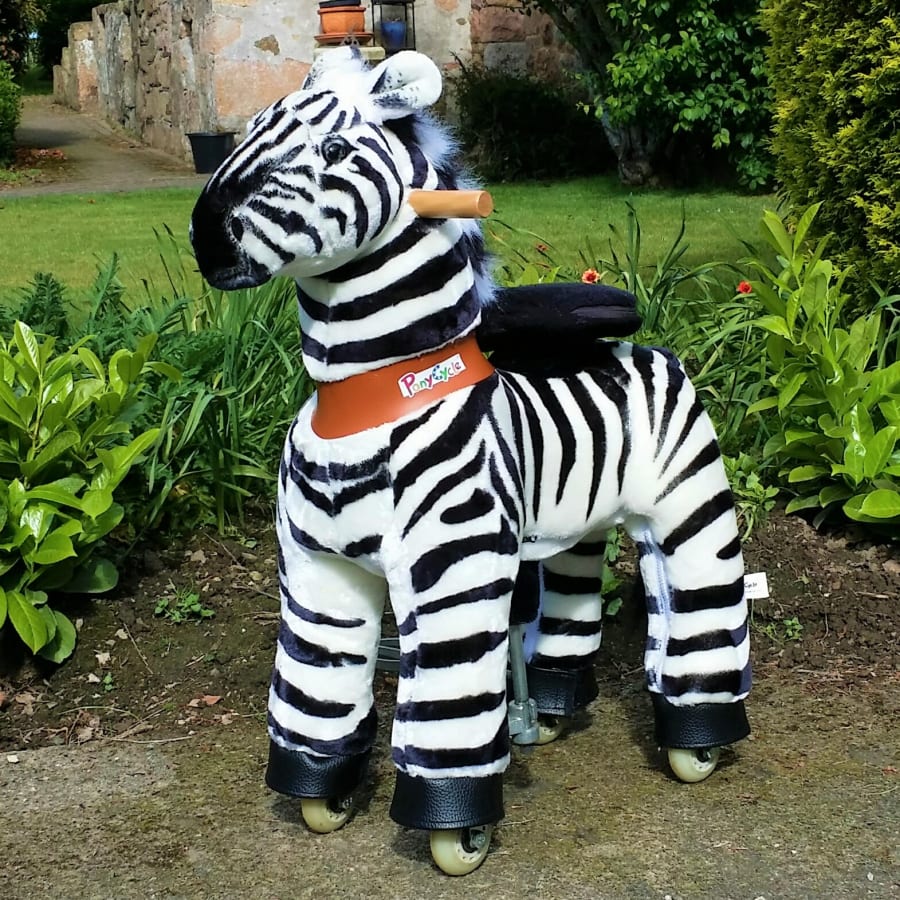 Our small Pony Cycles are suitable for ages 3 to 5, maximum weight 4 st / 55 lbs / 25 kg. We have a selection of cute ponies in shades of brown or black, a unicorn, zebra, donkey and a cow.