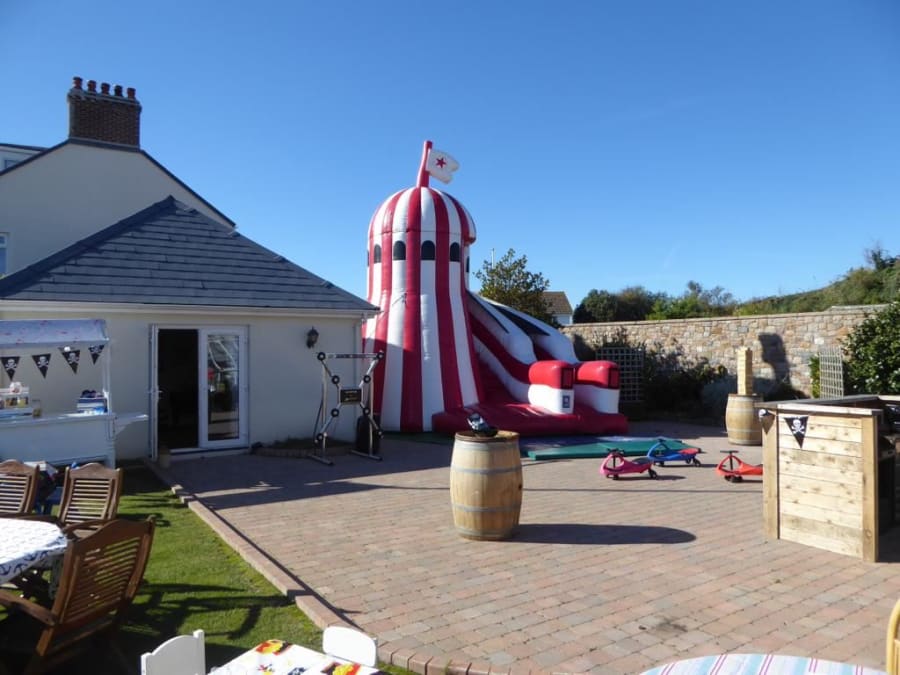 This Castle is designed to look like an old-fashioned fairground ride, however it's shiny red and white stripes can be seen from a distance and immediately attracts children of all ages. Scramble up the steps and then zoom down the spiral slide and then do it all again!