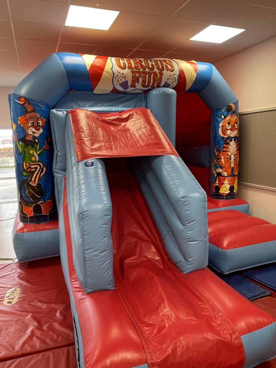 The Circus Themed Castle is a vibrant, eye-catching attraction built to turn any event into a carnival of fun. Perfect for birthday parties, community fairs, and family events, this themed bounce house delivers high-impact visuals and nonstop play. It combines bright circus graphics, durable construction, and easy setup to create a memorable experience for kids and parents alike.