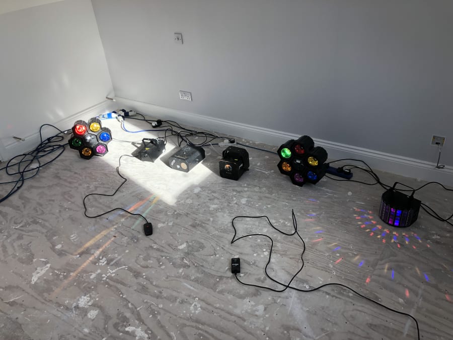 A collection of disco lighting suitable for a home style disco party.