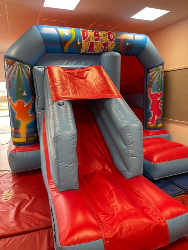 Red/Blue Velcro bounce and slide castle. (This castle is reserved for parties at Trinity Youth Centre however if it is not in use we can provide this at other venues. Please email us for availability.)