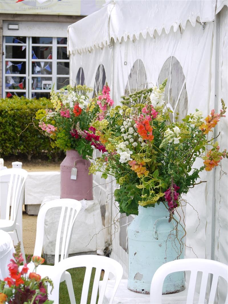We have collected some fantastic old Jersery Milk Churns that can be used for flowers or props. Just fantastic, very shabby chic!
